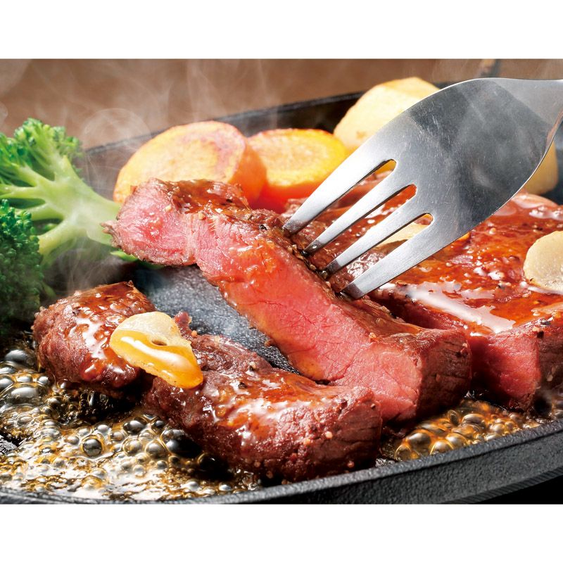 お肉博士が目利きで選びぬいた「牛ロース肉」をステーキ用に焼き上げてお届け。レンジで温めるだけの簡単調理。