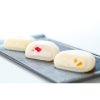 ふんわり食感にこだわって作った生クリーム大福 北海道生クリームに岡山県産清水白桃、瀬戸内産レモン、そしていちごのダイスカットを加え、マシュマロのように柔らかく、ふわふわなお餅で包みこみました。