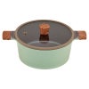さわやかなくすみグリーンで、キッチンを鮮やかに彩ります。こびりつきにくいダイヤモンドコート加工。接合部分にリベット(留め具)がない為、洗いやすいです。軽量なアルミダイカストを採用。強度に優れ、熱伝導率が高いため、素早く調理できます。PFOA・PFOS不使用。レシピブック付。