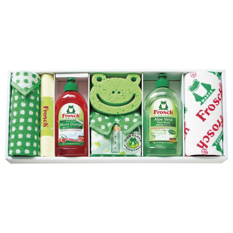 フロッシュ(アロエヴェラ)(約500ml)・フロッシュ(ブラッドオレンジ)(約300ml)・スポンジ×各1、マイクロファイバークロス(約250×250mm)・タオルハンカチ(約250×250mm)×各2