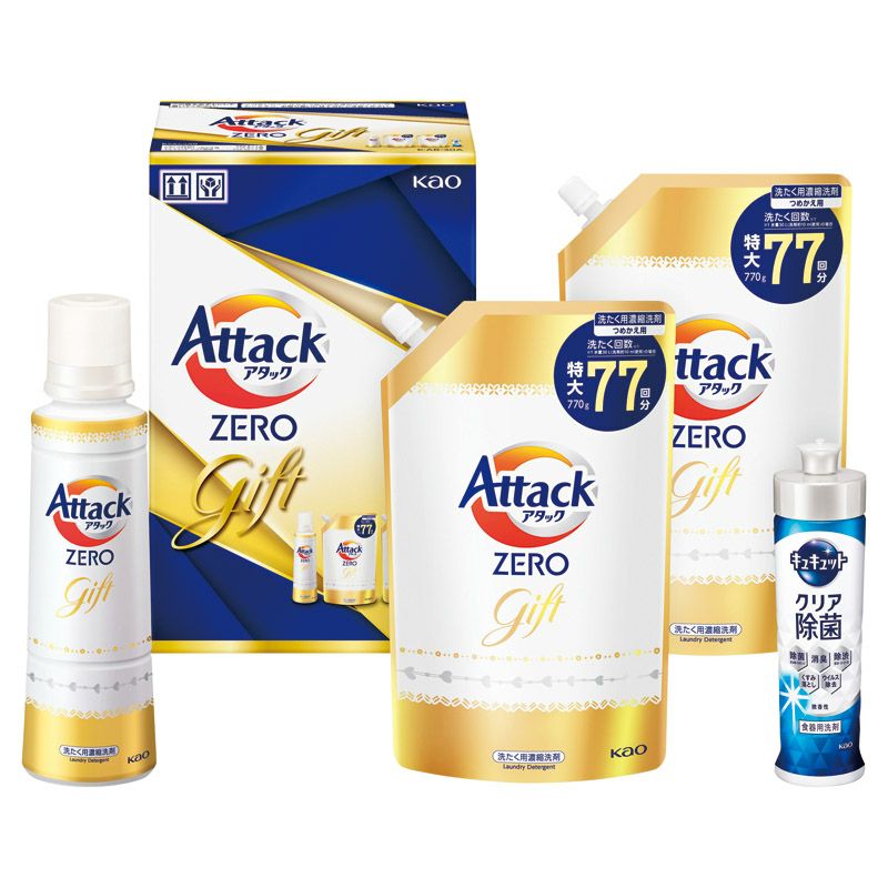 アタックZERO(580g)・キュキュットクリア除菌(220ml)×各1、アタックZERO詰め替え(770g)×2