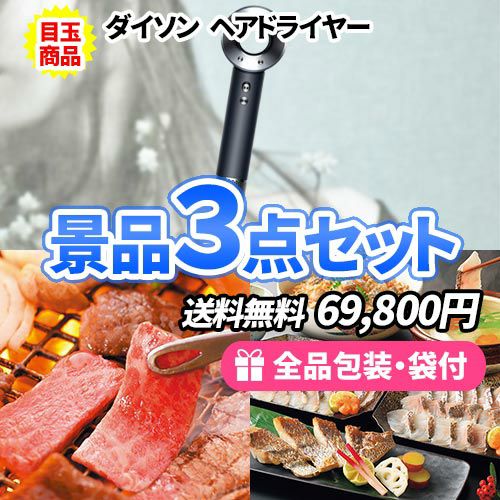 ダイソンヘアドライヤーを目玉にお肉と魚が入った景品3点セット