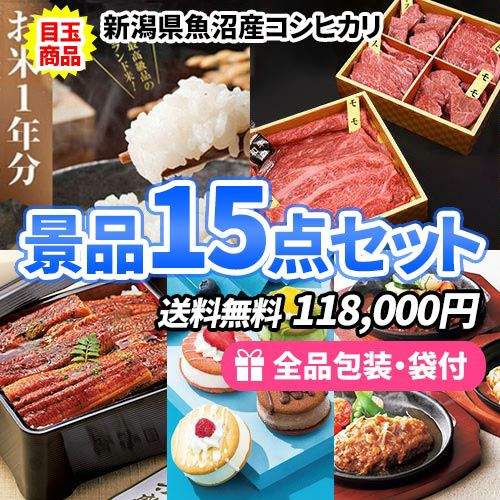 コシヒカリ1年分をメインにこだわりの景品をセレクトした景品15点セット