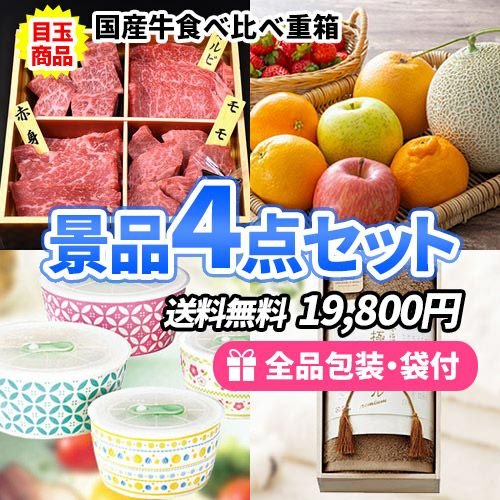 国産牛食べ比べ重箱をメインにこだわりの景品4点セット