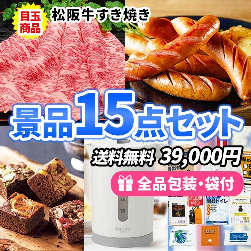 松阪牛を目玉に家庭で使えるアイテムが入った景品15点セット