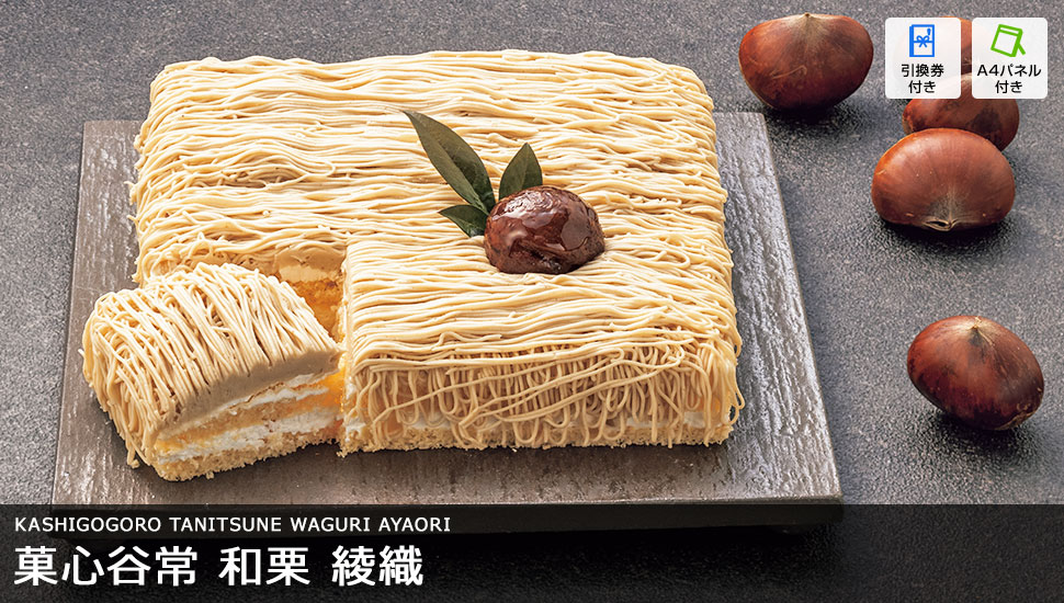 和栗とこだわりの洋素材で作り上げた、贅沢な栗ケーキです。ほんのり洋酒の香るスポンジ生地に刻み栗を散りばめた濃厚な純生クリームと、絹のように繊細でなめらかな口当たりのパティシエ特製クリームを丁寧に重ね、最後に渋皮付きの和栗を一粒飾っています。