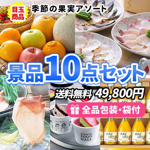女性に嬉しい食品がたくさん詰まった、フルーツ盛合せが目玉の景品10点セット
