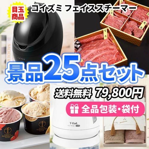 女性に人気のフェイススチーマーに国産牛食べ比べを含めた景品25点セット