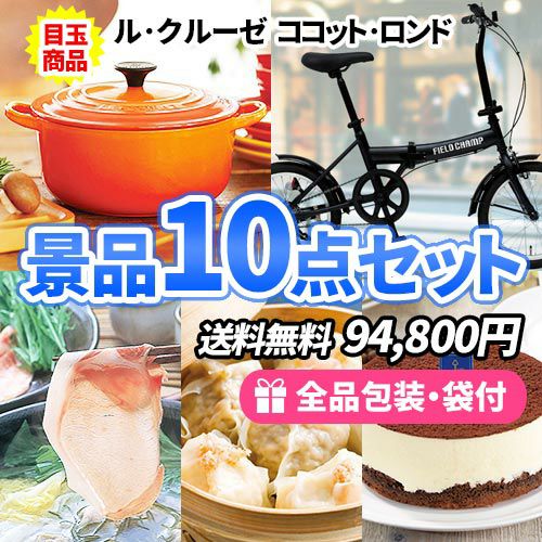 ル・クルーゼココットを目玉に自転車・産直品を加えた景品10点セット