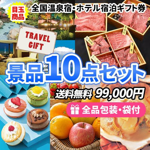 全国温泉宿・ホテル宿泊券をメインに女性に人気の豪華産直品を加えた景品10点セット