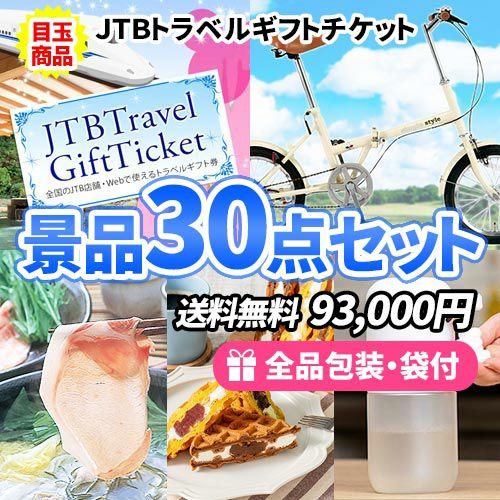 折畳自転車にトラベルチケット!産直品も入って大満足の多人数用景品30点セット
