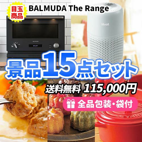 バルミューダオーブンレンジを目玉に家庭を彩る雑貨&食品の詰まった景品15点セット【一部商品引換券】【送料無料】