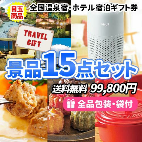 全国温泉宿・ホテル宿泊券を目玉に家庭を彩る雑貨&食品の詰まった景品15点セット【一部商品引換券】【送料無料】