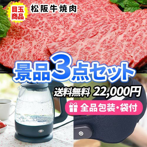 松阪牛焼肉をメインに家庭で使える電化製品が入った景品3点セット