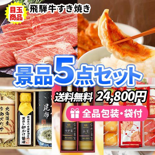 名店こだわりの味を詰合せ!飛騨牛すき焼きがメインの景品5点セット