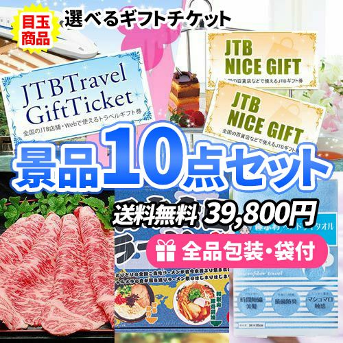選べるギフトチケットを目玉に食品・雑貨が入った景品10点セット