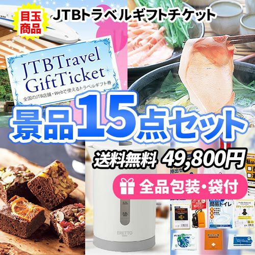 トラベルギフトチケットに家庭で使えるアイテムが入った景品15点セット