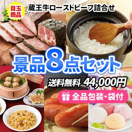 ローストビーフを目玉にバラエティに富んだ食べ物景品8点セット