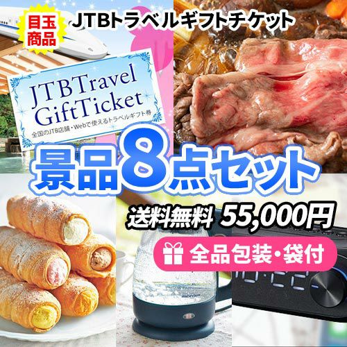 トラベルギフトを目玉にお手軽商品を揃えた景品8点セット