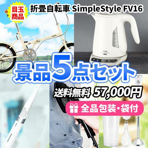 折畳自転車を目玉にお家で使える家電たっぷり景品5点セット