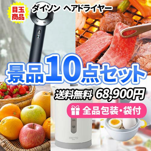 ダイソンヘアドライヤーを目玉に家庭で使える便利な景品10点セット