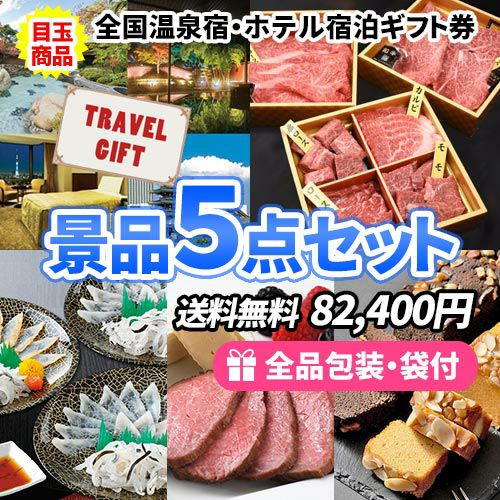 全国温泉宿・ホテル宿泊券を目玉に豪華産直品の景品5点セット