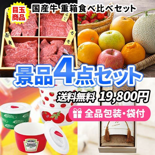 国産牛食べ比べ重箱をメインにこだわりの景品4点セット
