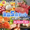 届くのが楽しみな食品ばかり!季節のフルーツ盛合せが目玉の景品5点セット