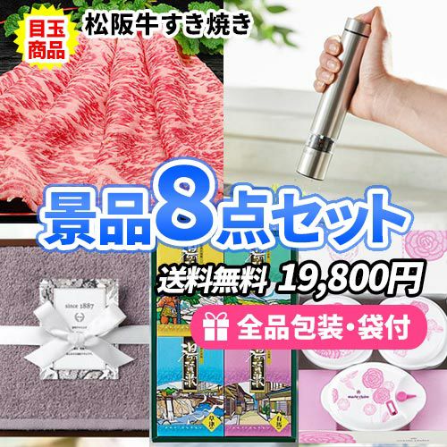 松阪牛すき焼きと便利な商品が詰まった景品8点セット