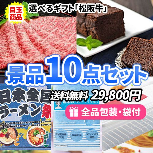 選べる松阪牛ギフトを目玉に食品・雑貨が入った景品10点セット