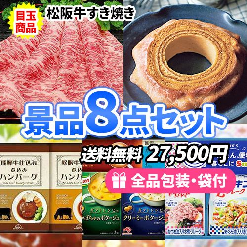 松阪牛すき焼きをメインに食卓を彩る美味しい景品8点セット