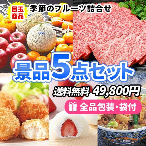 届くのが楽しみな食品ばかり!季節のフルーツ盛合せが目玉の景品5点セット【商品引換券】【即納商品】【送料無料】