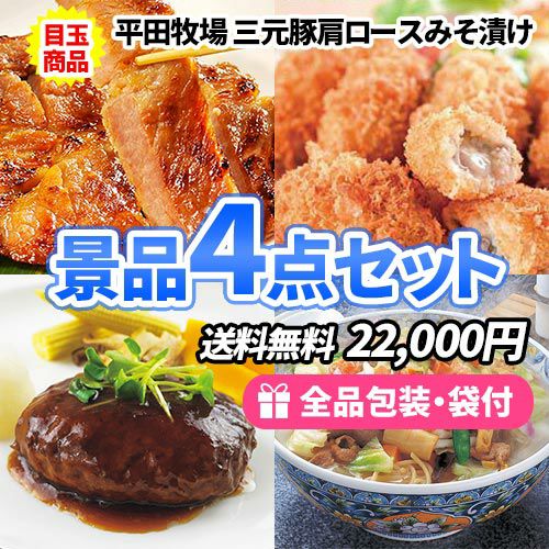 平牧三元豚がメインの美味しいお手軽景品4点セット【商品引換券】【即納商品】【送料無料】