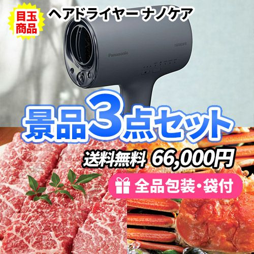 女性に大人気のパナソニックヘアドライヤーを目玉に豪華産直品を含めた景品3点セット