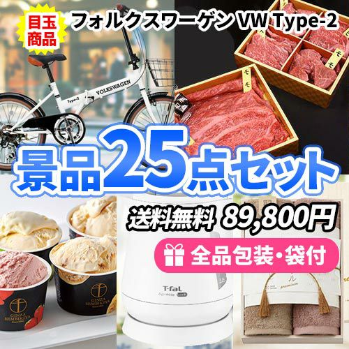 男女に人気の折畳自転車をメインに人気食材を含めた景品25点セット
