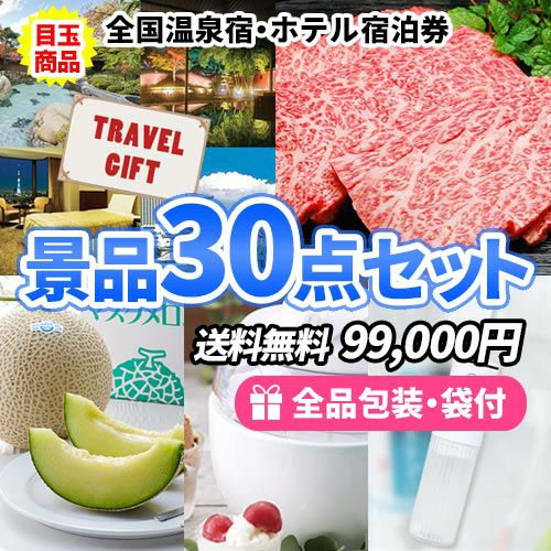 全国温泉宿・ホテル宿泊券を目玉に松阪牛も入った景品30点セット