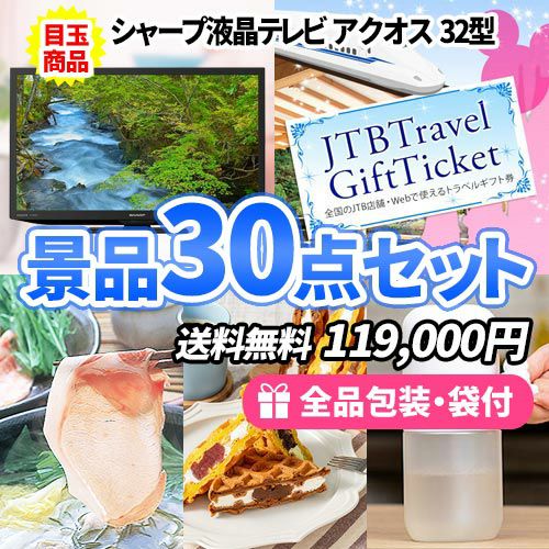 液晶テレビにトラベルチケット!産直品も入って大満足の多人数用景品30点セット