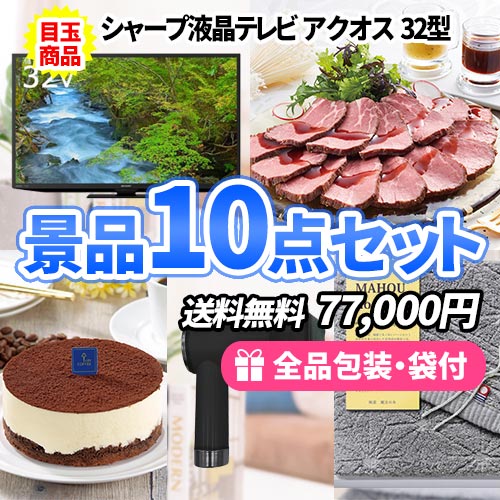 液晶テレビをメインに食品・日用品が詰まった使える景品10点セット