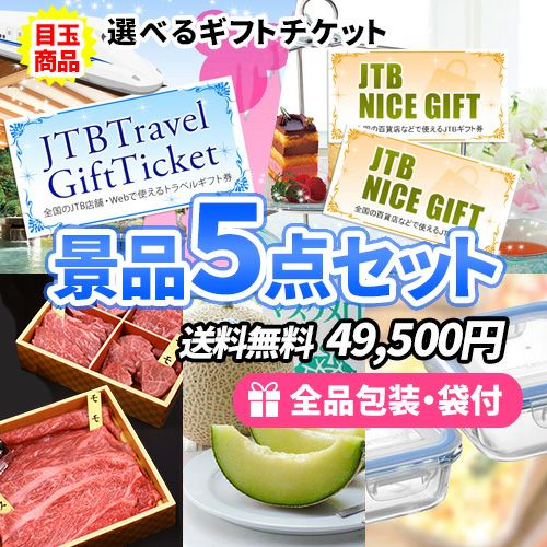 選べるギフトチケットを目玉に美味しい&使える景品5点セット