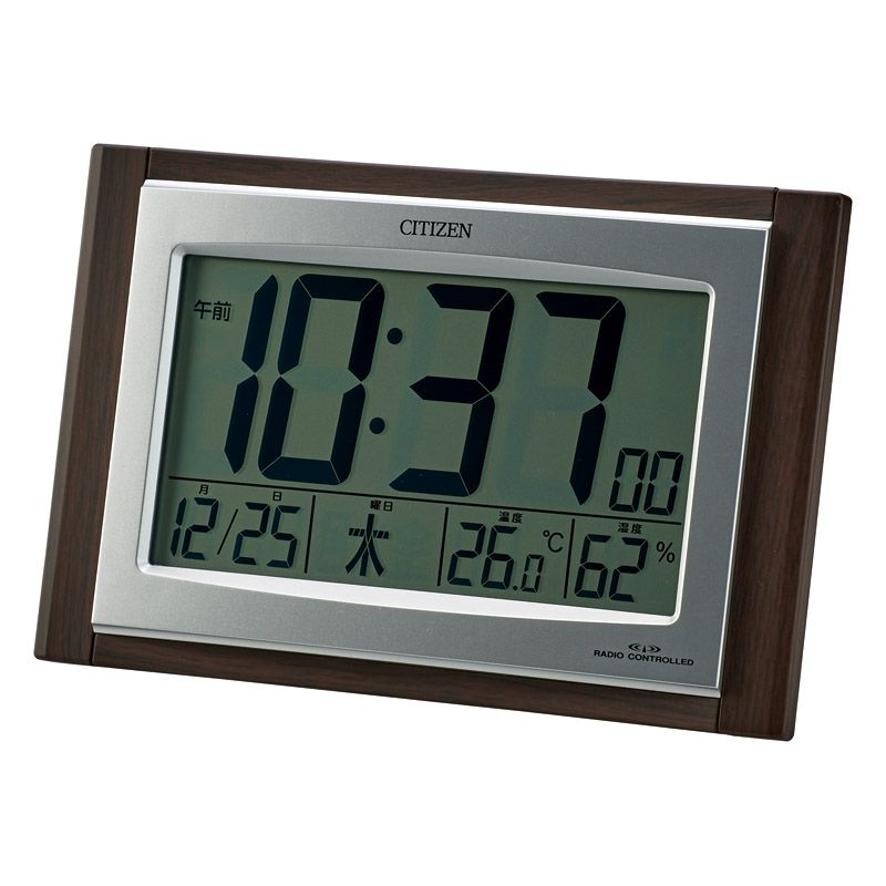 記念品に最適な重厚感溢れるデザイン、大きく見やすい数字の掛置兼用電波時計。○カレンダー表示○温度・湿度表示○掛置兼用(内蔵スタンド)