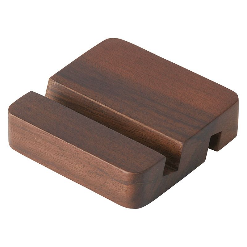 美しい木目がデスク周りに高級感を演出する、ウォールナットを使用したスマホスタンド。木の温かみを感じられるアイテムです。