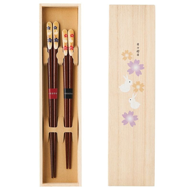若狭塗 吉兆桐箱入 夫婦箸 楽うさぎ