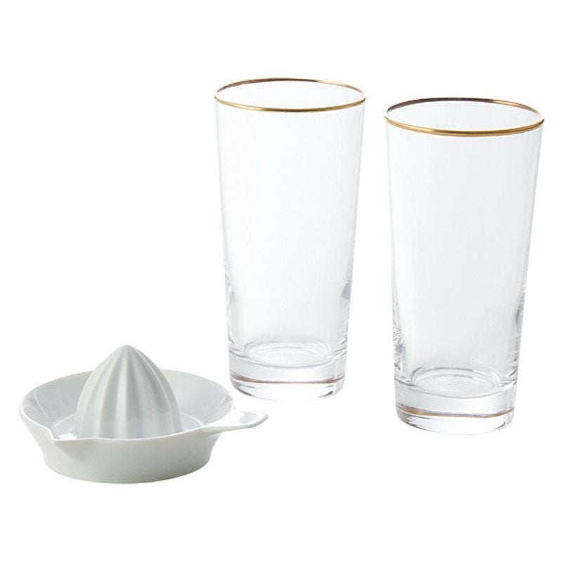 サワーグラス(約435ml)(約φ77×152mm)×2、レモン搾り(約φ101×53mm)×1 ■材質:ガラス・磁器