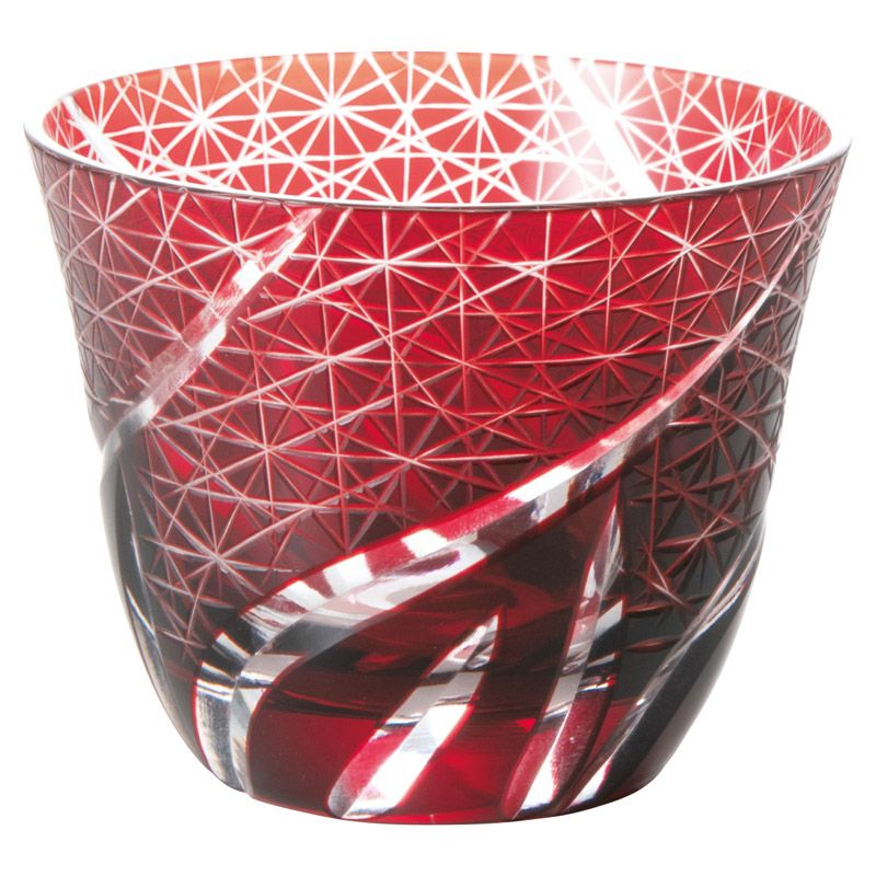 少し厚みのある色ガラスに丁寧にいくつものカットを重ね、美しい模様の切子グラスが生まれます。カットに映った光が屈折し、1本1本の線が放つ美しい輝きをお楽しみいただけます。カットの凹凸を手の中で感じることができ、手作りのあたたかさを感じていただくことができます。