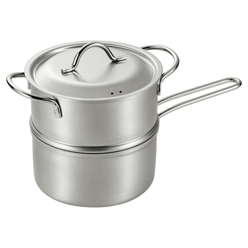熟練の技巧、信頼の日本製。優れた耐久性と保温性を誇るステンレス製。少量の蒸し物に便利なサイズです。下鍋はミルクパンとしてもお使いいただけます。