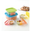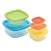 重ねて収納できて、使わないときはコンパクトに。フタは区別しやすい5カラー。本体が透明なので保存した内容を確認しやすい。冷蔵・冷凍対応で食材の小分けや作り置きおかずの保存に便利。本体は電子レンジ対応で、おかずを温めてそのまま食べられます。食洗機OK。