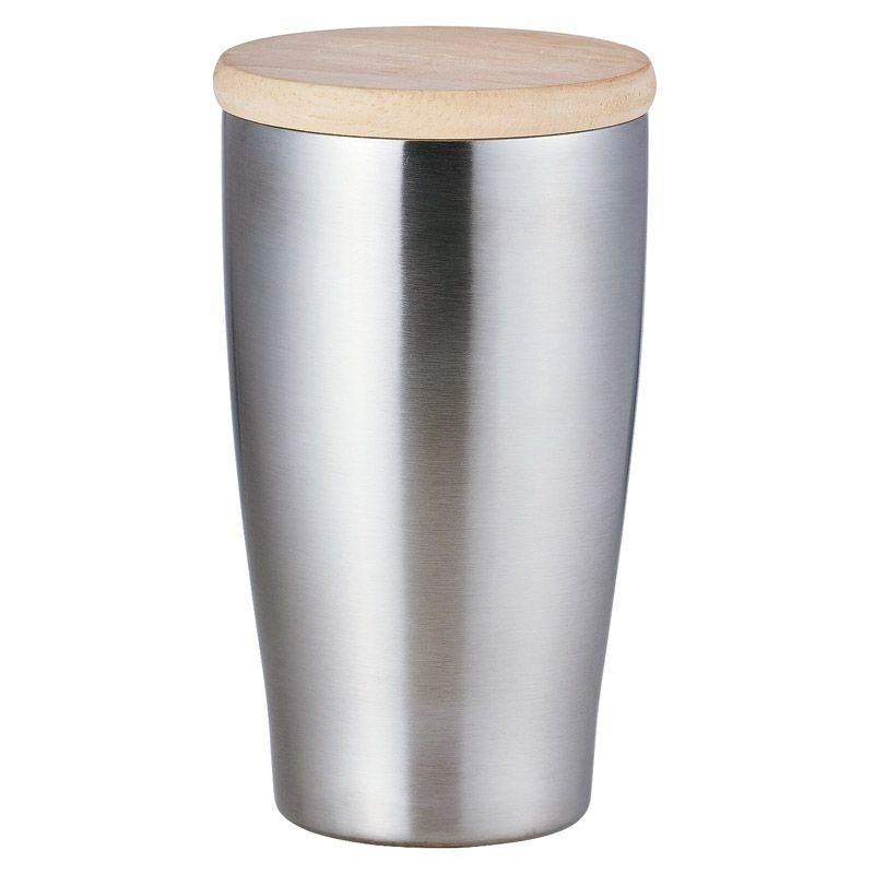 天然木の蓋がついた真空2重構造のステンレスタンブラー。パッキン付きの木蓋で保冷温の効果がさらにアップし、真空2重構造なので飲み物の温度をしっかりとキープ。