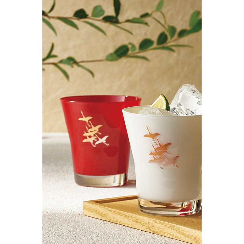 ぬりもんde Verre フリーグラス紅白ペア 蒔絵 千羽鶴