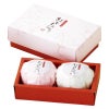 お饅頭に見立てた国産ハンドタオルセット。紅白で記念品やお祝いにぴったりです。