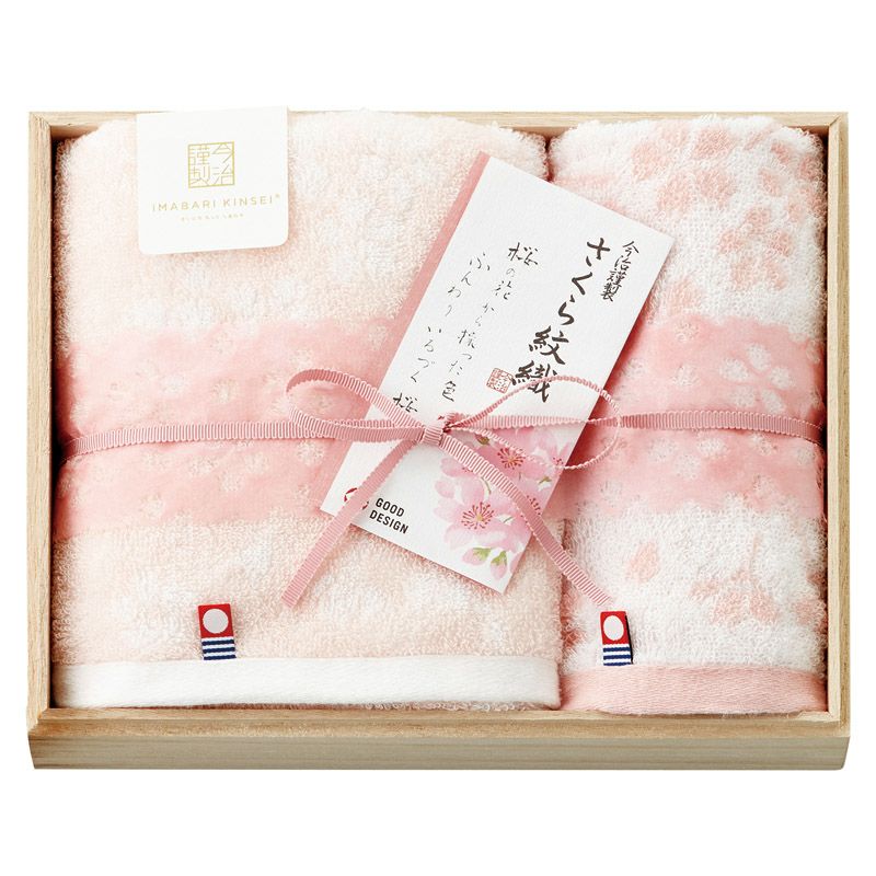 今治謹製 さくら紋織 木箱入り桜染めフェイス1P・ウォッシュタオル1P